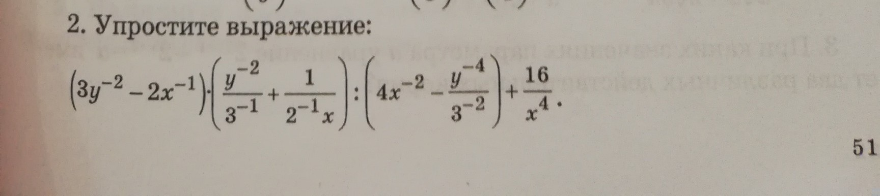 =( frac{3}{y^2} - frac{2}{x} )( frac{3}{y^2} + frac{2}{x}):( frac{4}{x^2} - frac{3^2}{y^4}  )+   frac{16}{x^4} = \  \  frac{3x-2y^2}{xy^2} *frac{3x+2y^2}{xy^2} : frac{4y^4-9x^2}{x^2y^4} + frac{16}{x^4} = \  \ frac{9x^2-4y^4}{x^2y^4} * frac{x^2y^4}{4y^4-9x^2} + frac{16}{x^4} =-1+frac{16}{x^4} =frac{16}{x^4} -1