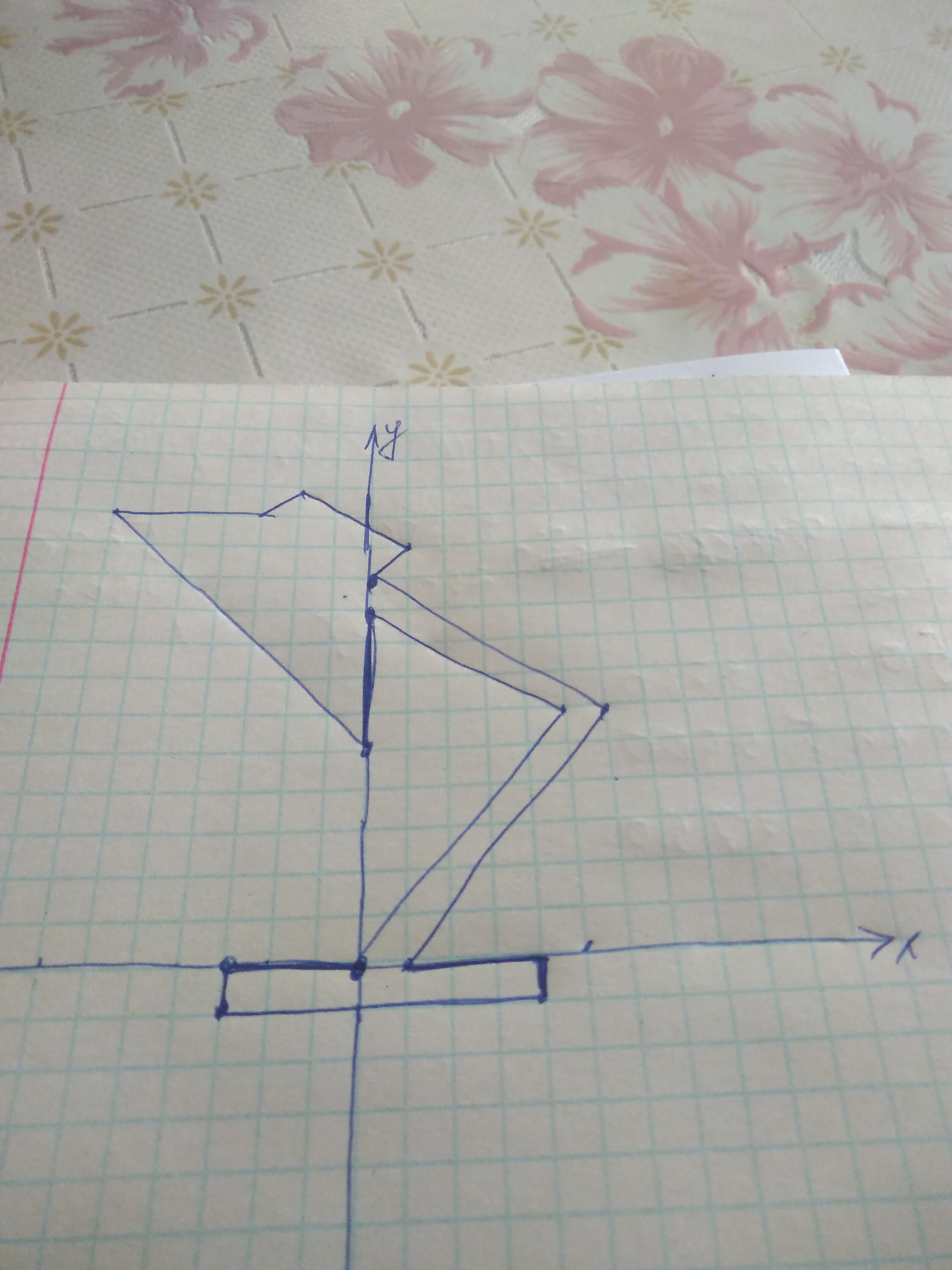 (0; 0), (- 3; 0), (- 3; - 1), (4; - 1), (4; 0), (1; 0), (6; 6), (0; 10), (1; 11), (- 2; 13), (- 3; 12), (- 7; 12), (0; 5), (0; 9), (5; 6), (0; 0).