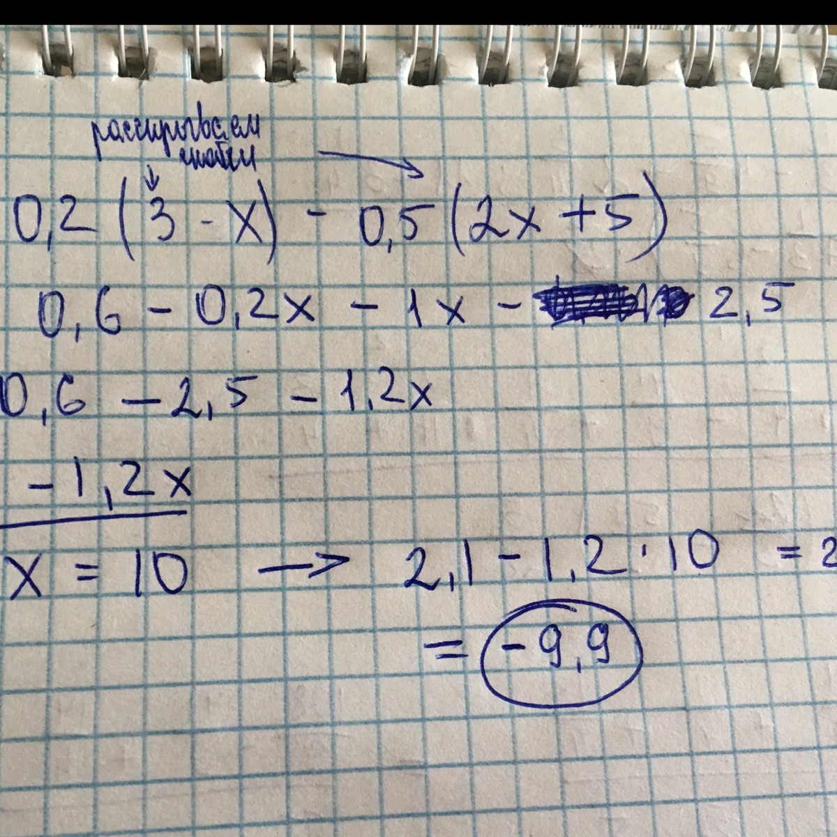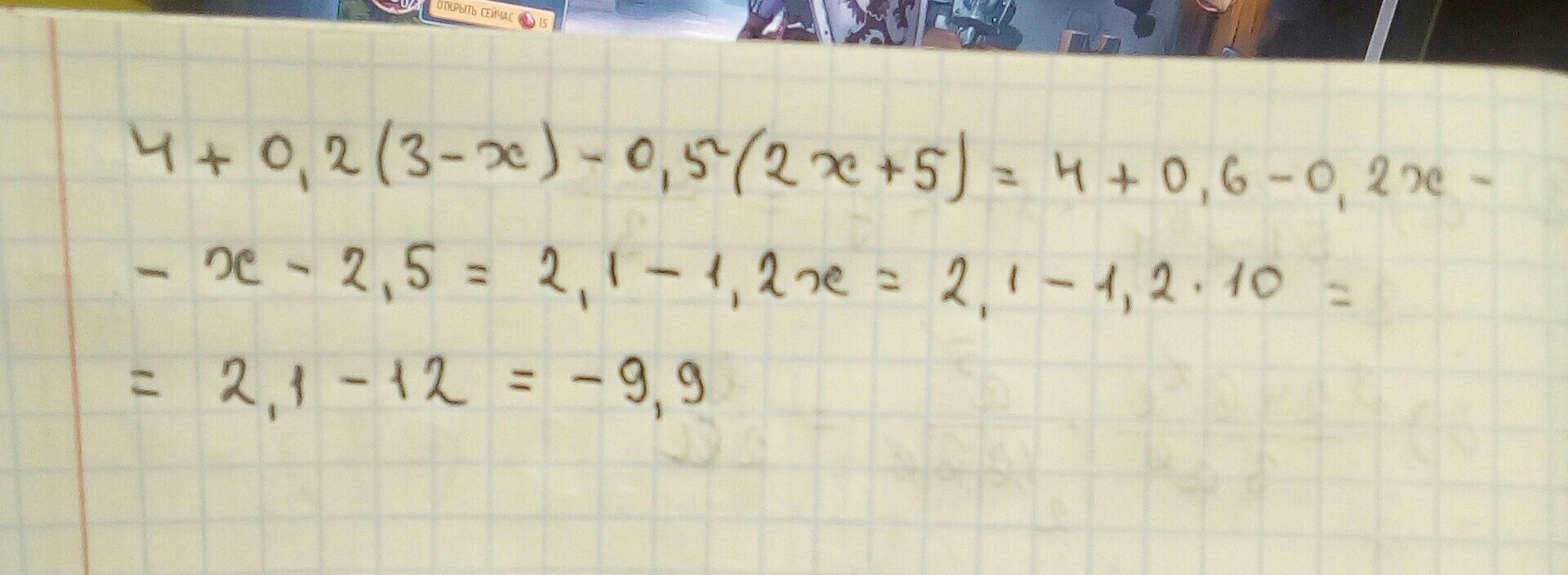 4+0,2*(3-x) - 0,5*(2x + 5)
