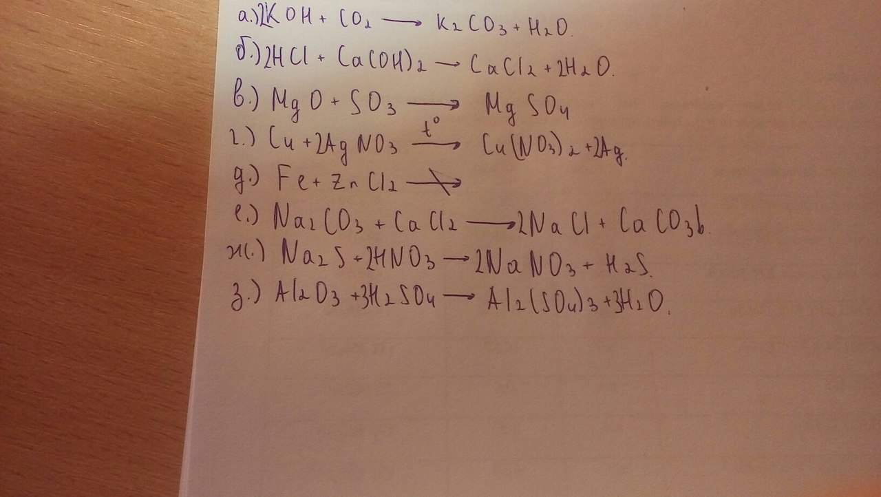 Закончите уравнение возможных реакций