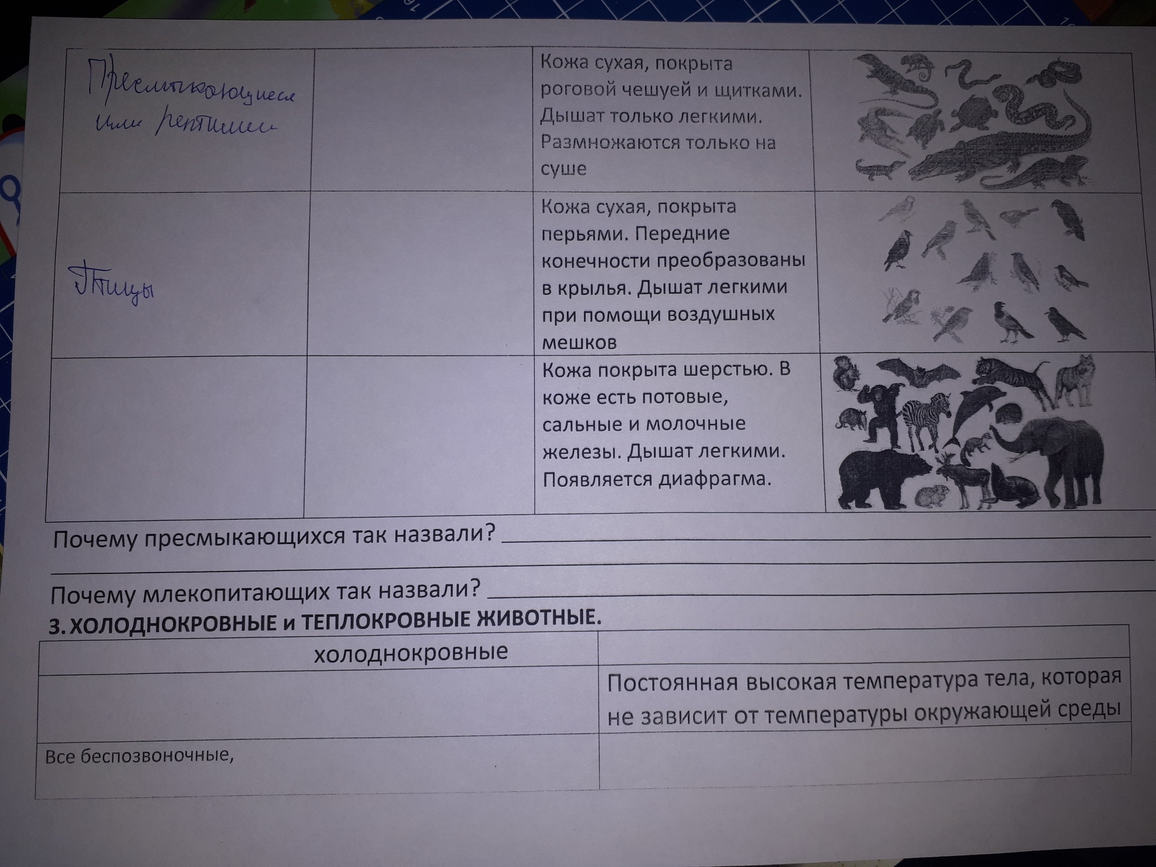 1 столбик - черепахи, змеи, ящерицы, крокодилы.