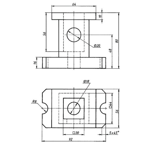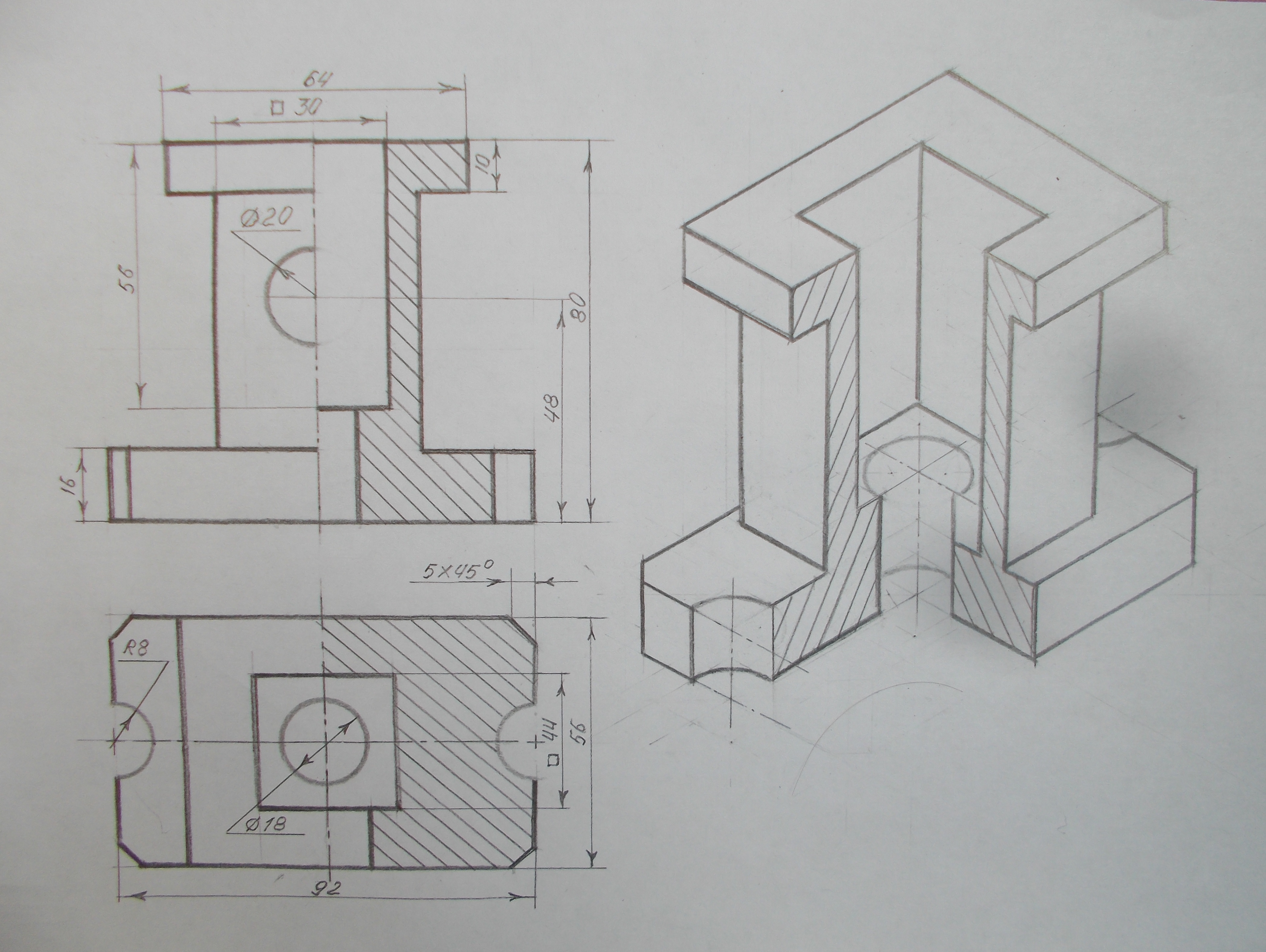 Выполните необходимые разрезы на чертеже опоры и её изометрическую проекцию с вырезом.