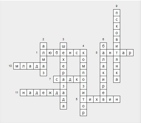 Помогите пж создать кроссворд 11 вопр про Николая Андреевича Корсаков. Ну например 1) сколько создал опер (15)