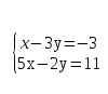 left { {{x=3y-3} atop {5x=11+2y}} right.