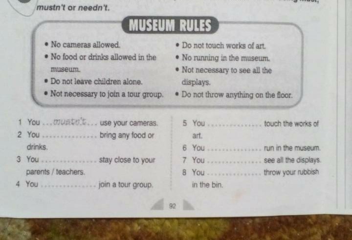 Извините ,но там чуть чуть не видно.Надо вставить must ,musn't ,needn't