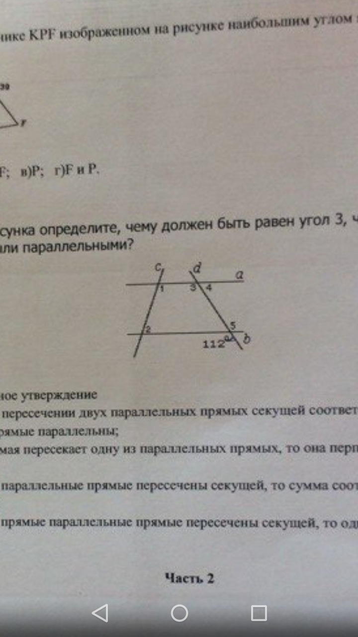 Угол три должен быть равен углу 5, так как они накрест лежащие. А теорема говорит нам, что если накрест лежащие углы равны, прямые параллельны