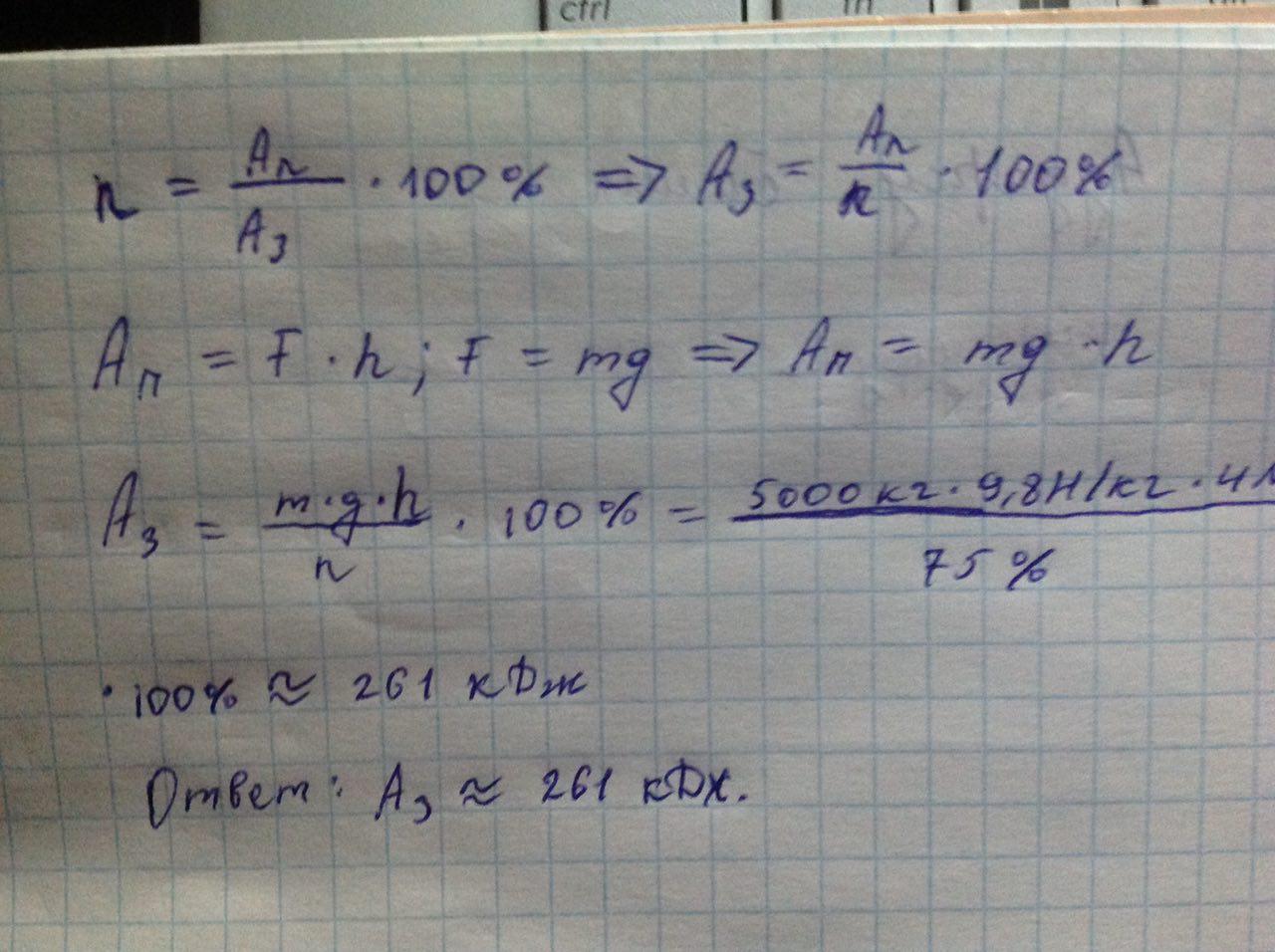 При помощи лебедки поднимают груз массой 5 т на высоту 4 м. Вычислите работу, которую надо произвести для этого подъема, если коэффициент полезного действия лебедки равен 75%.