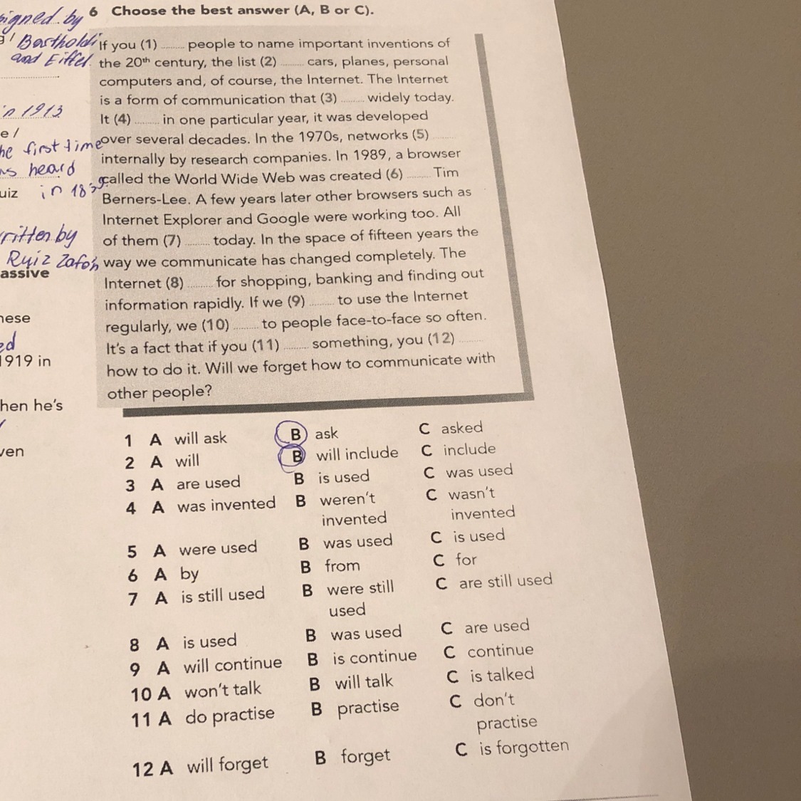 1. b 2. b 3. b 4. с 5. a 6. a 7. c 8. a 9. c 10. a 11. c 12. b