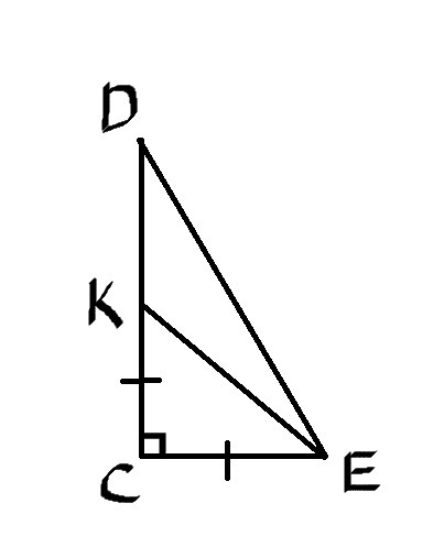 Так как ∠С = 90° , а CK=CE, то △CKE - Равнобедренный