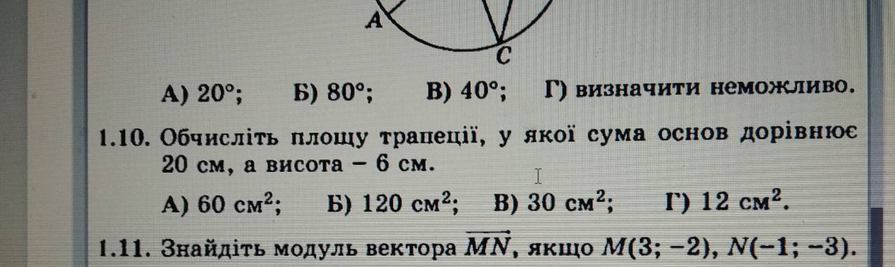 площадь трапеции находят так: произведение полусуммы оснований и высоты, т.е. S = 1/2 · 20 · 6 = 60 (cм²)