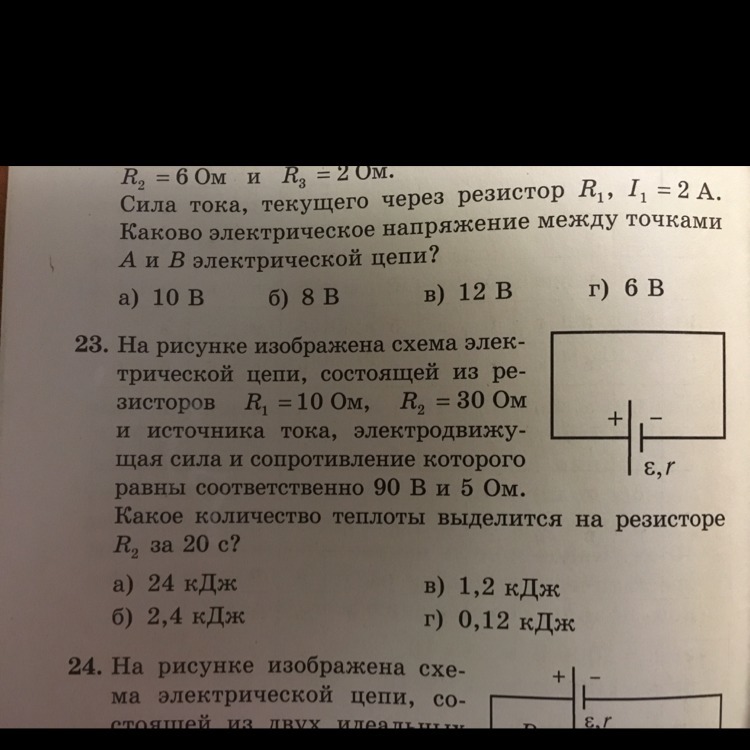 Мощность на втором резисторе: P = U^2 / R2 = 97,2 (Дж/с)