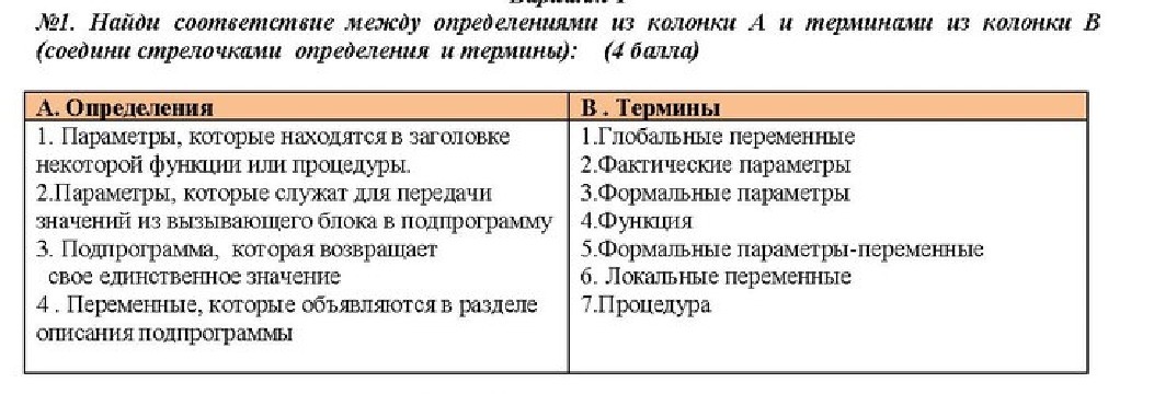 Найдите соответствие между определениями из колонки А и их терминами из колонки Б.(пожалуйста, оба задания)