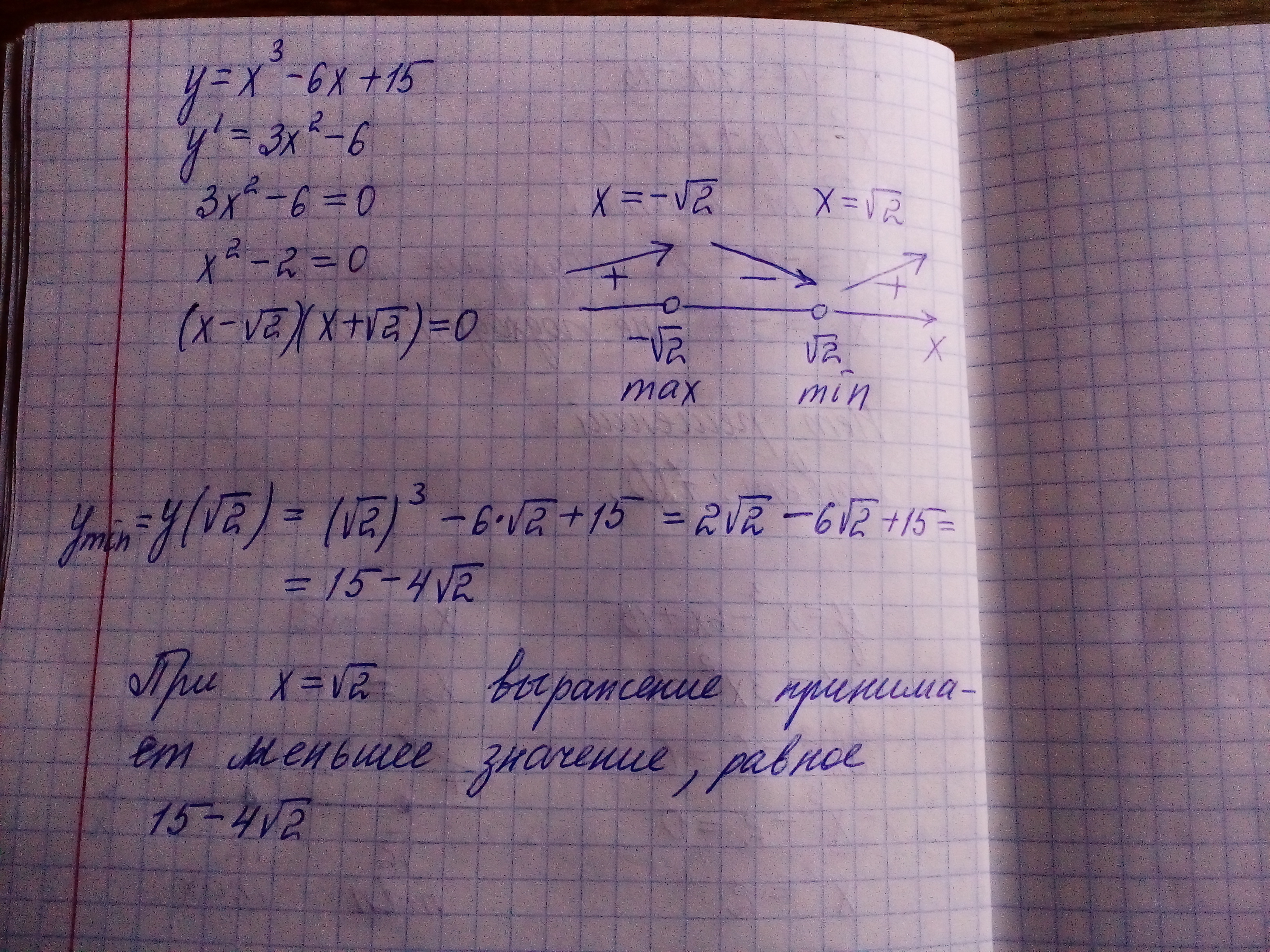 Какое меньшее значение и при каком значении переменной принимает выражение x3-6x+15