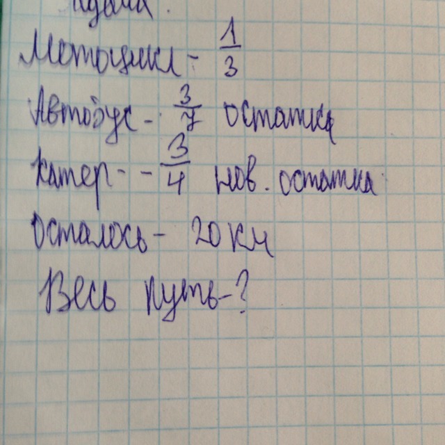 на катере (х-x/3-2x/7)*3/4=x(8/21)*(3/4)=2x/7