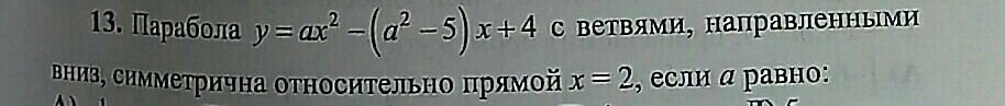 Два решения а=1-sqrt(6) или а=1+sqrt(6)т.к. ветви направлены вниз , то а меньше 0.