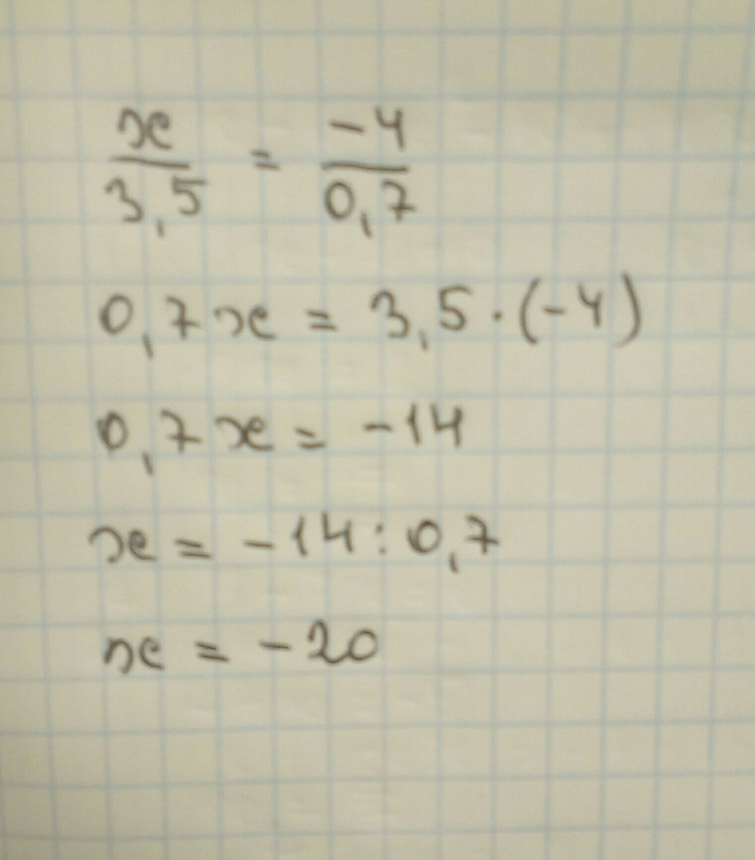 0,7х=-4*3,50,7х=-14х=-14/0,7=-20Ответ: х=-20