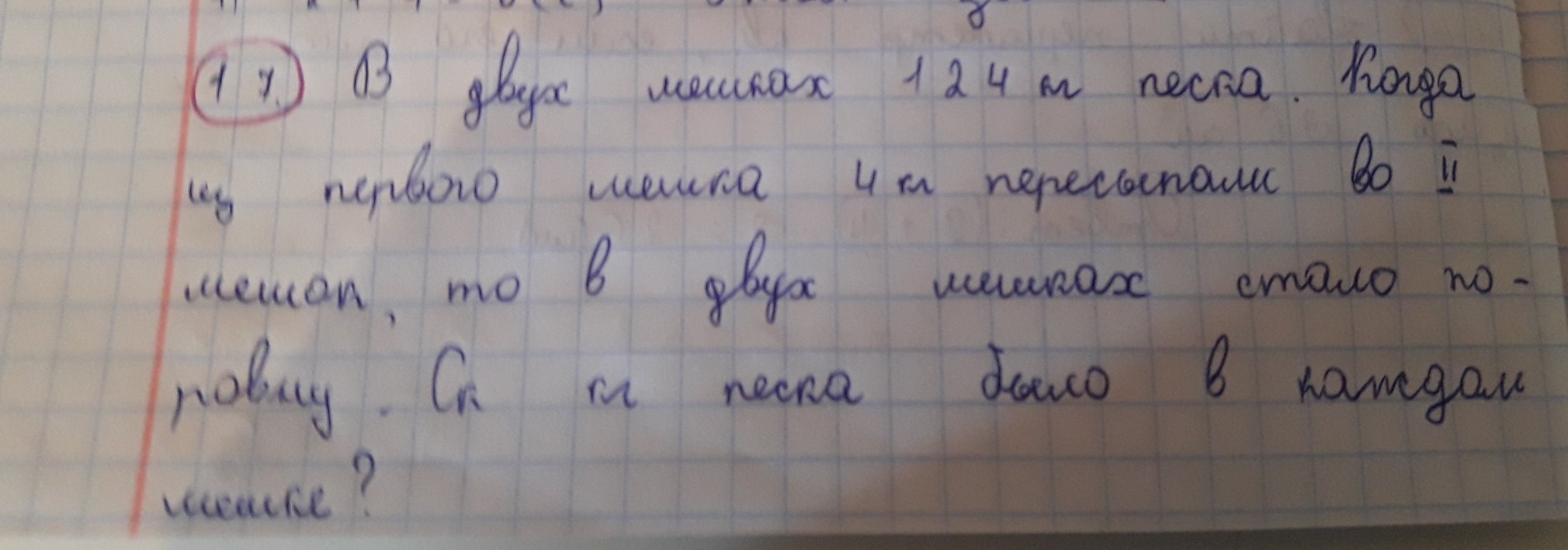 2) 62 + 4 = 66 (кг) - в первом мешке