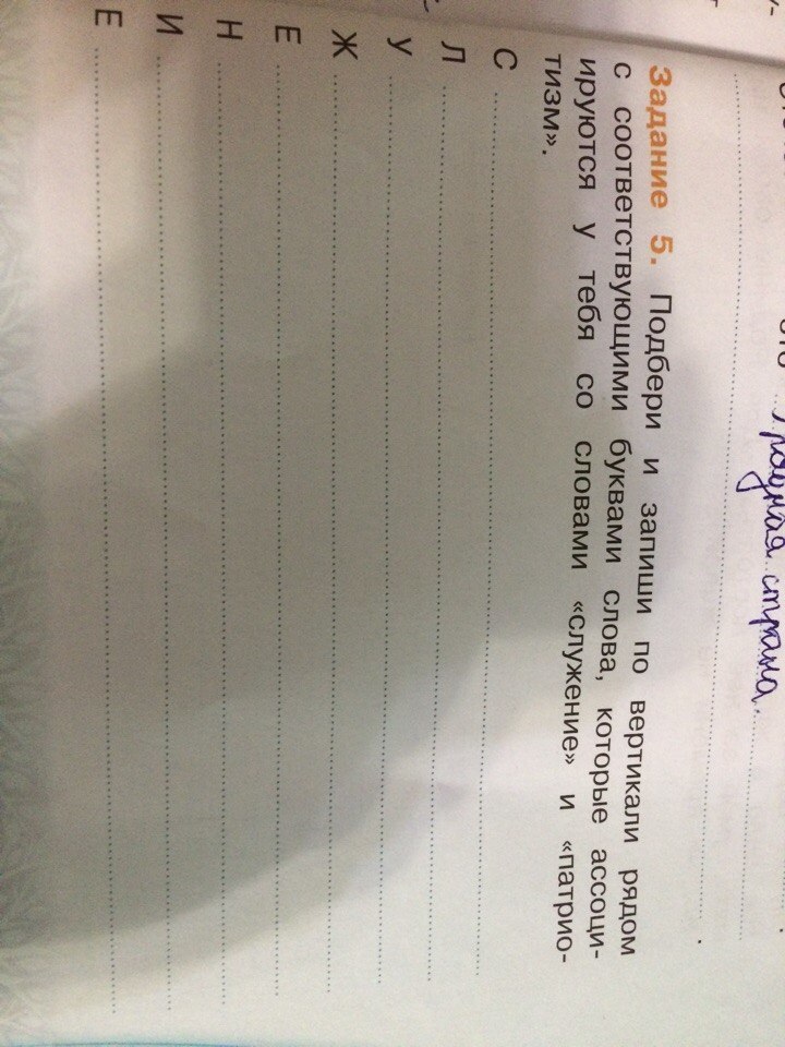 Подбери и запиши по вертикали рядом с соответствующими буквами слова которые ассоциируются у тебя со словами служение и патриотизм