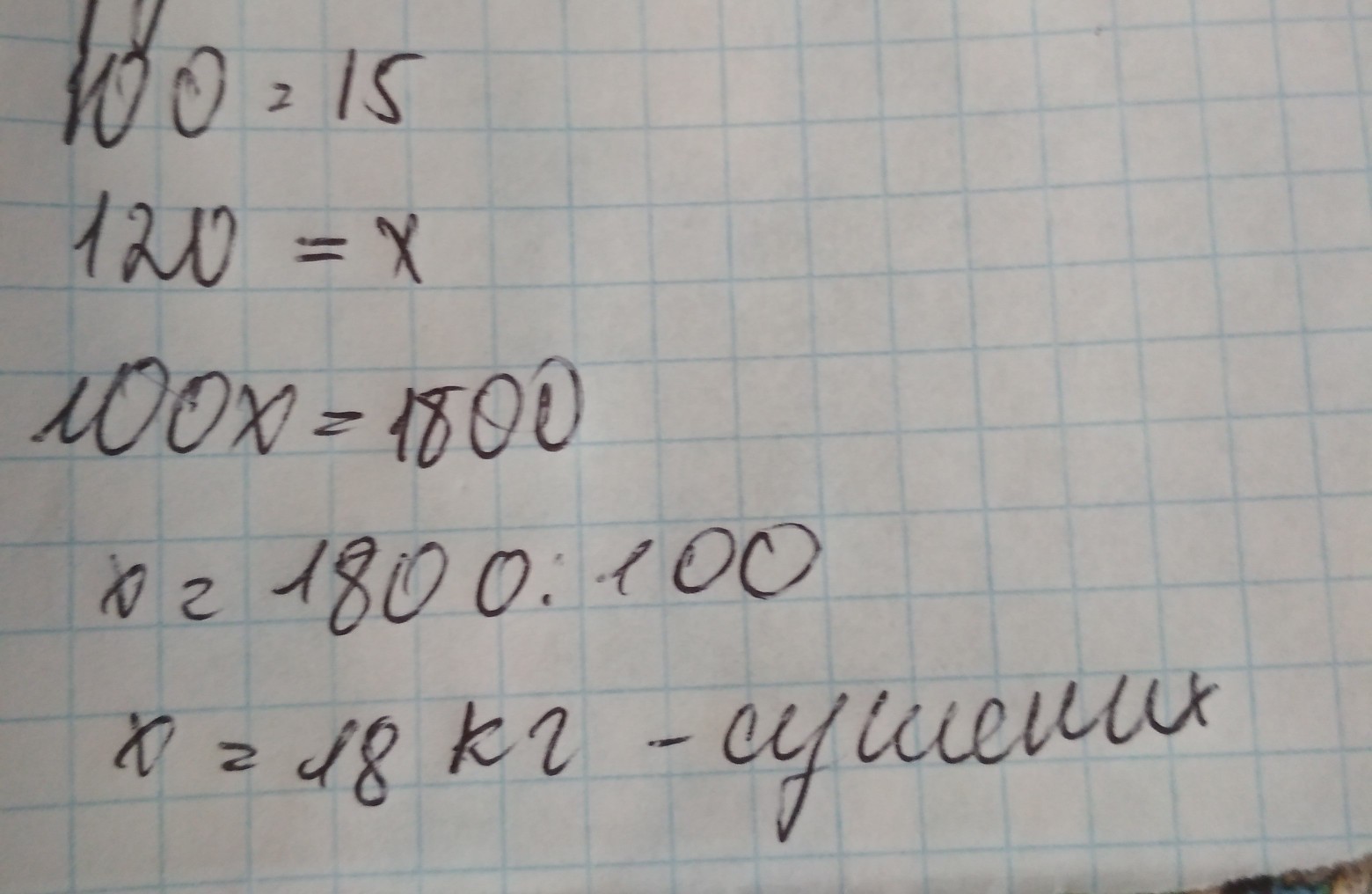 Із 100 кг свіжих вишень при сушінні виходить 15 кг сушених. Скільки сушених вишень вийде із 120 кг свіжих?