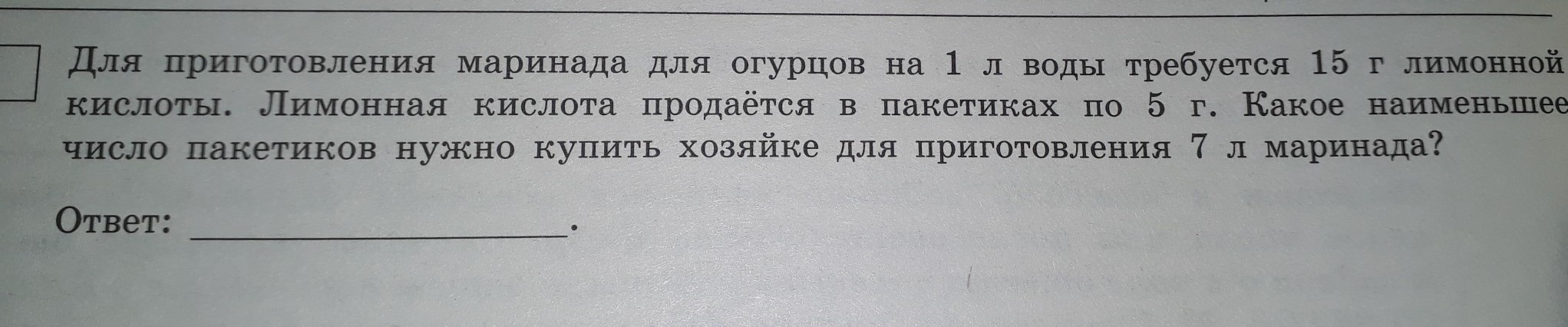 Т.к. литров 7, то количество литров умножаем на количество пакетиков