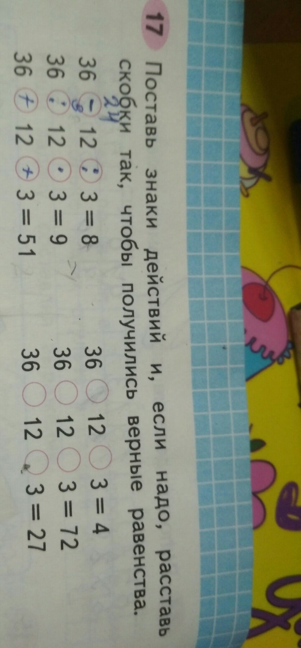 3.36-12+3=27 1) 36-12=24 2) 24+3=27