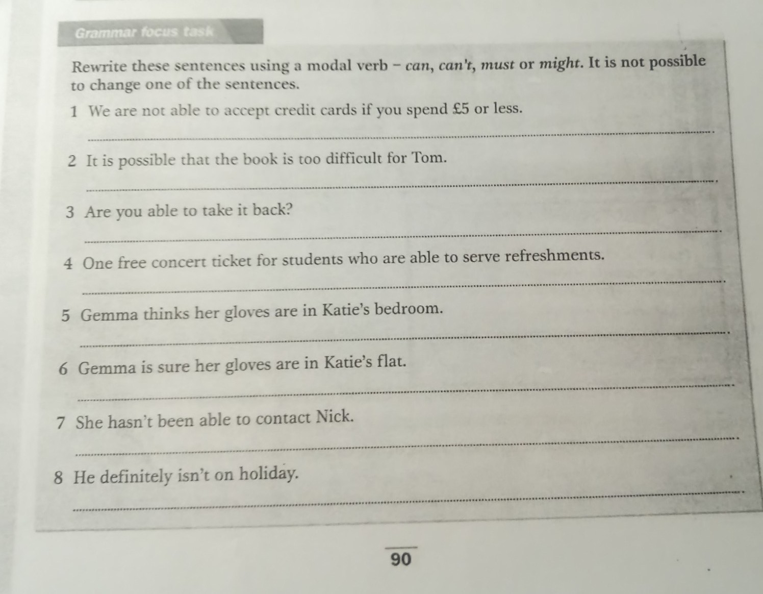 8 He can't be on holiday.