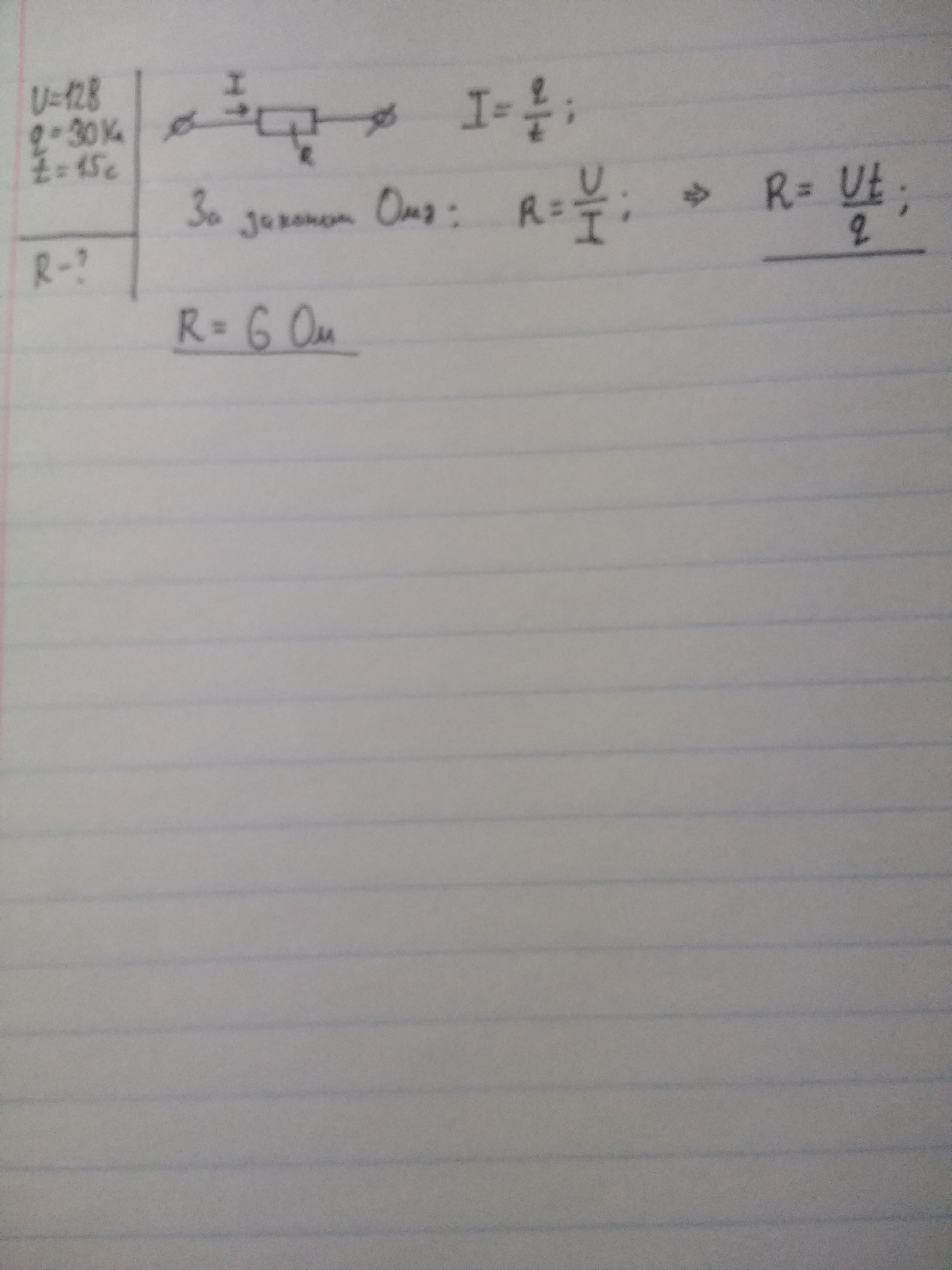 Определите сопротивление резистора в, если при напряжении 12 В через этот резистор за 15 с прошел заряд 30 Кл.