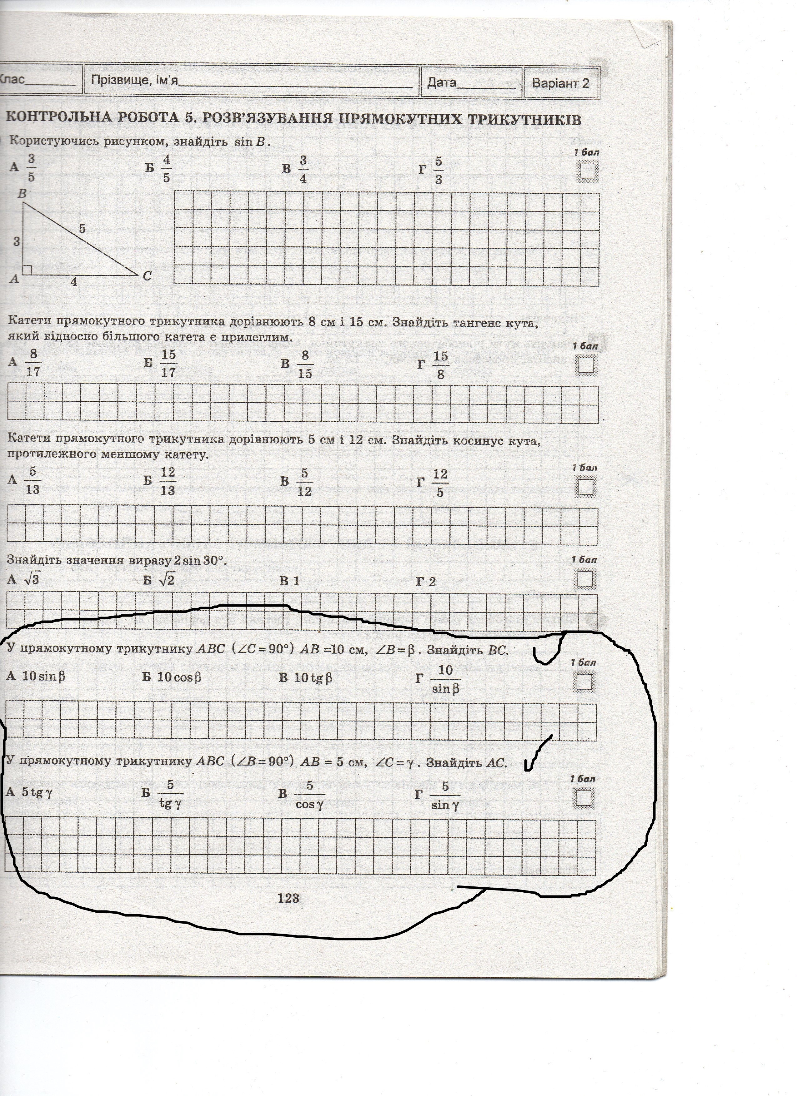1) ВС= 10 кос. В Ответ: Б
