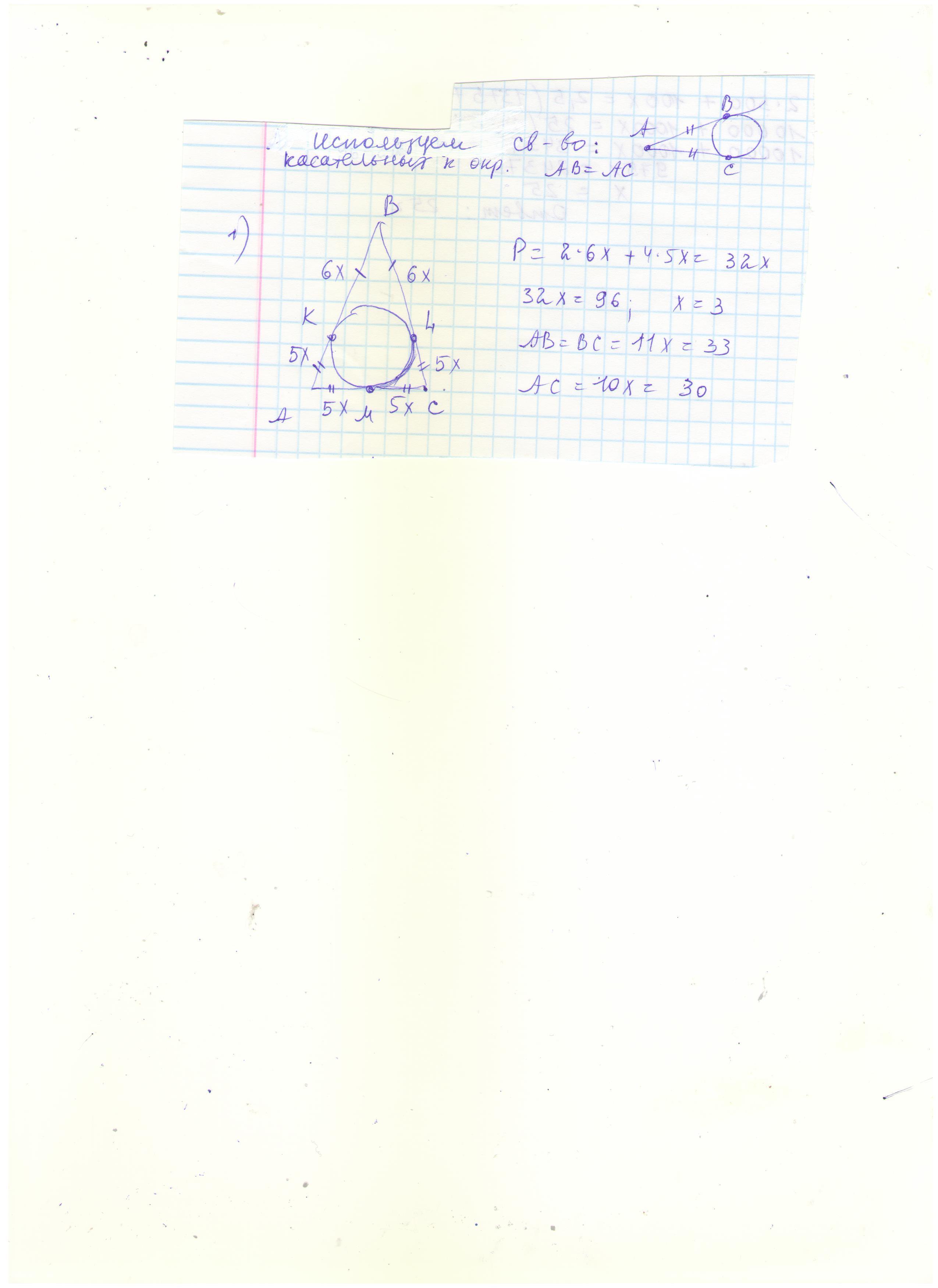 боковая сторона равнобедренного треугольника делится точкой касания вписанной окружности 6:5,считая от вершины, найдите стороны треугольника, если его периметр равен 96