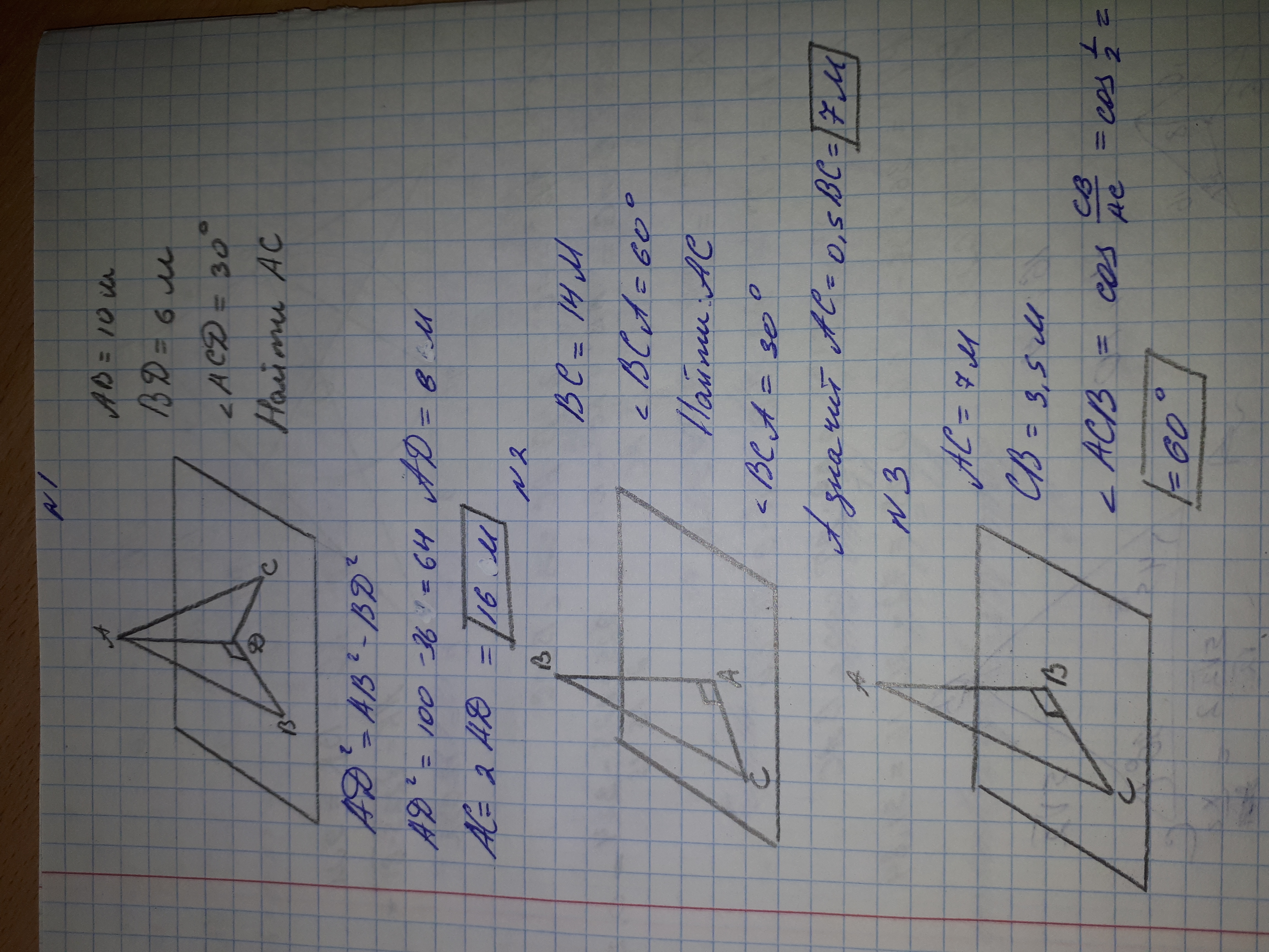 Из некоторой точки к плоскости а провели наклонную, длина которой 7м, проекция этой наклонной равна 3,5м. Найти угол этой наклонной и плоскости.