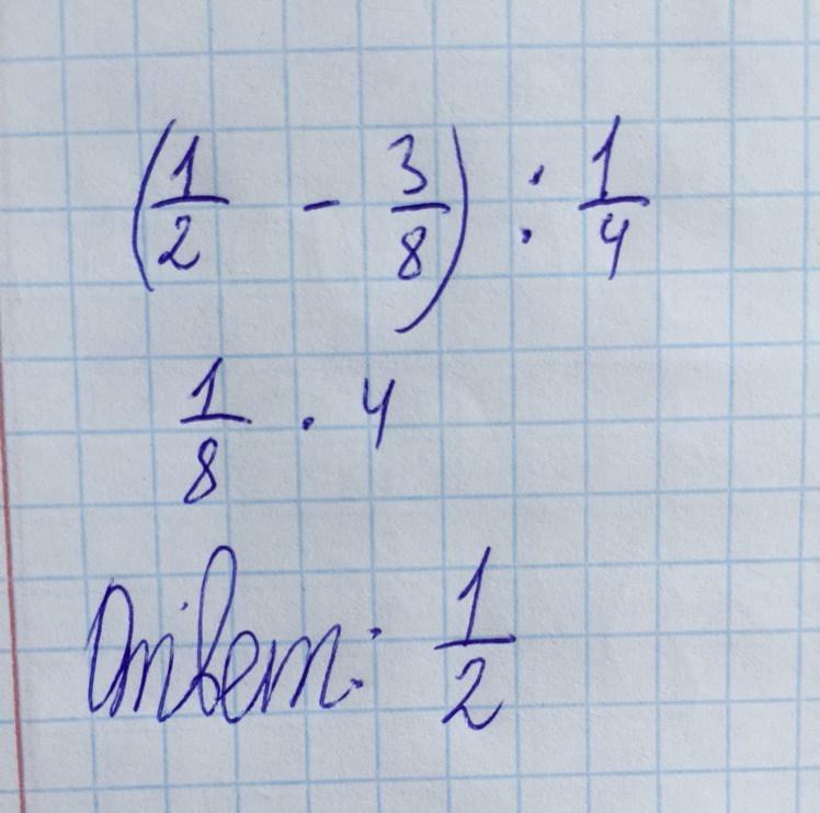 (1/2 - 3/8) : 1/4 = 1/8 * 4 = 1/2