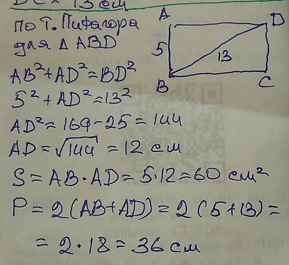 ВД - диагональ прямоугольника и гипотенуза треугольника АВД