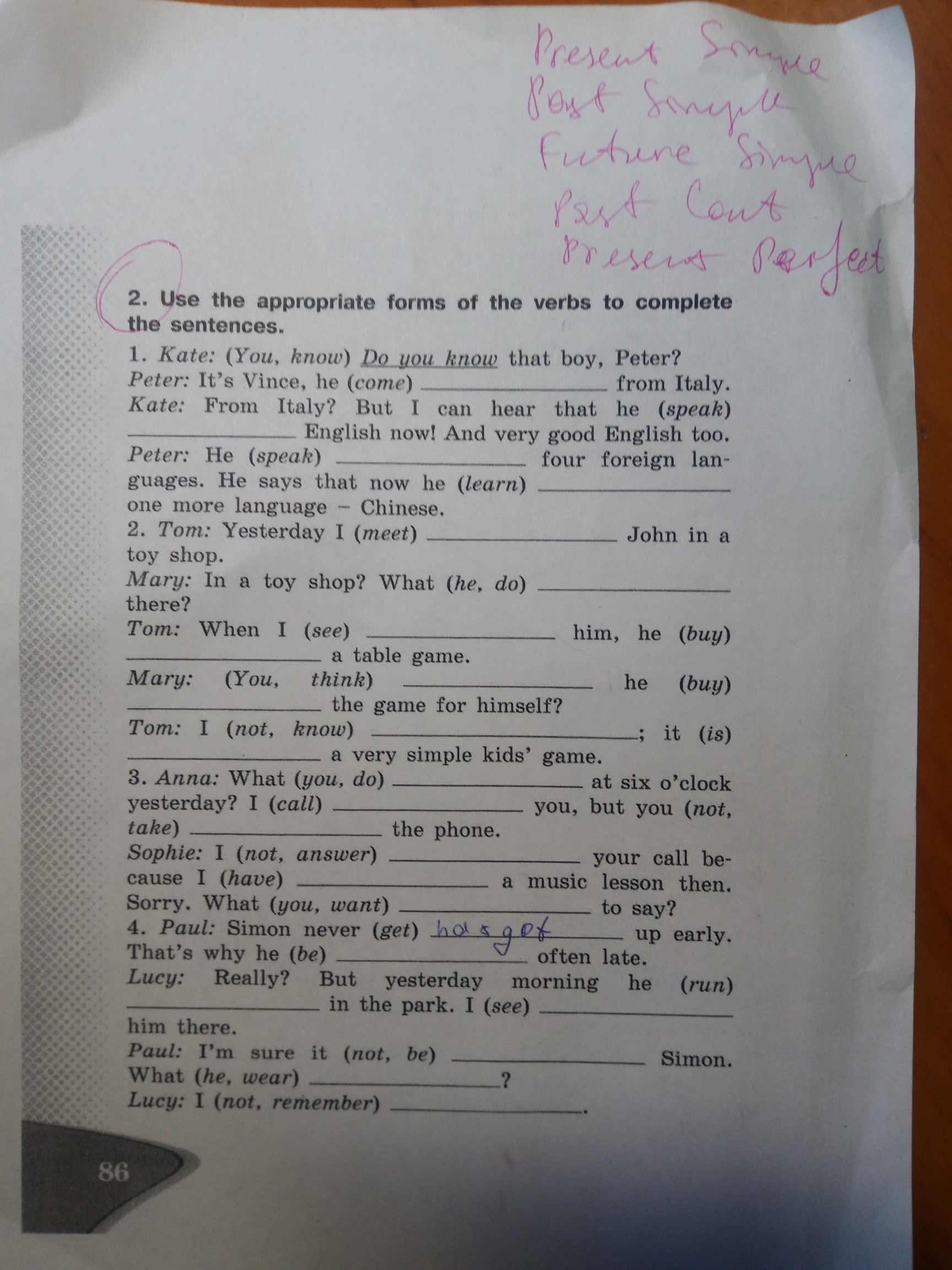 помогите сделать: Используйте соответствующие формы глаголов для завершения его предложений.