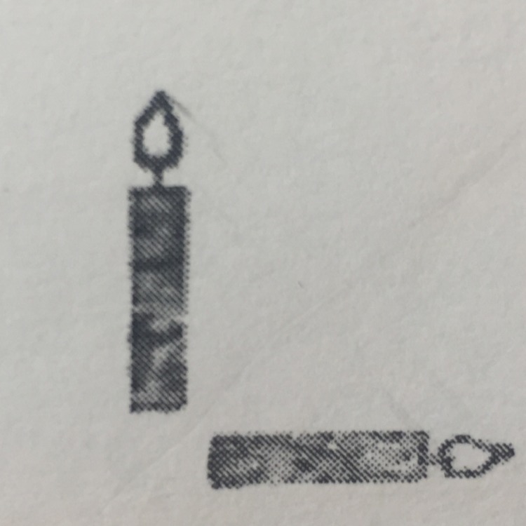 На рисунке изображены свеча и ее изображение в плоском зеркале. Где расположено зеркало? Сама свеча вертикальна.