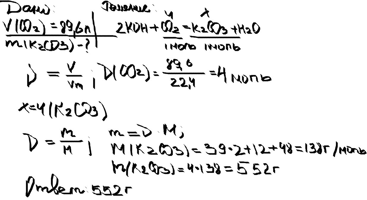 Яка маса солі утворилась при пропусканні 89.6 л вуглекислого газу крізь розчин KOH(калій гідроксиду)