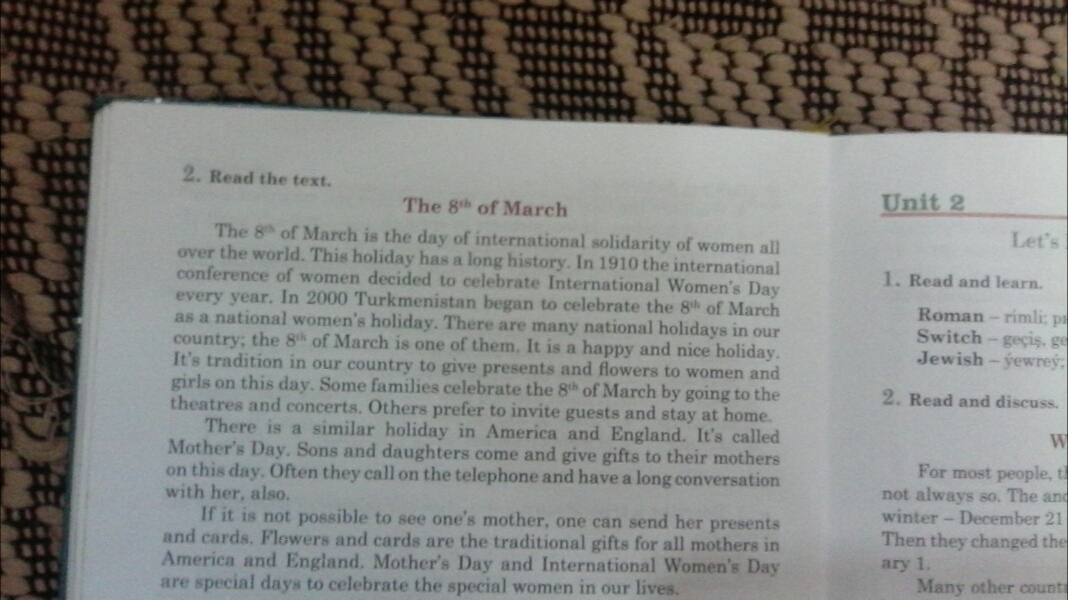 1)the 8th of March in Turkmenistan celebrated a national women's day.