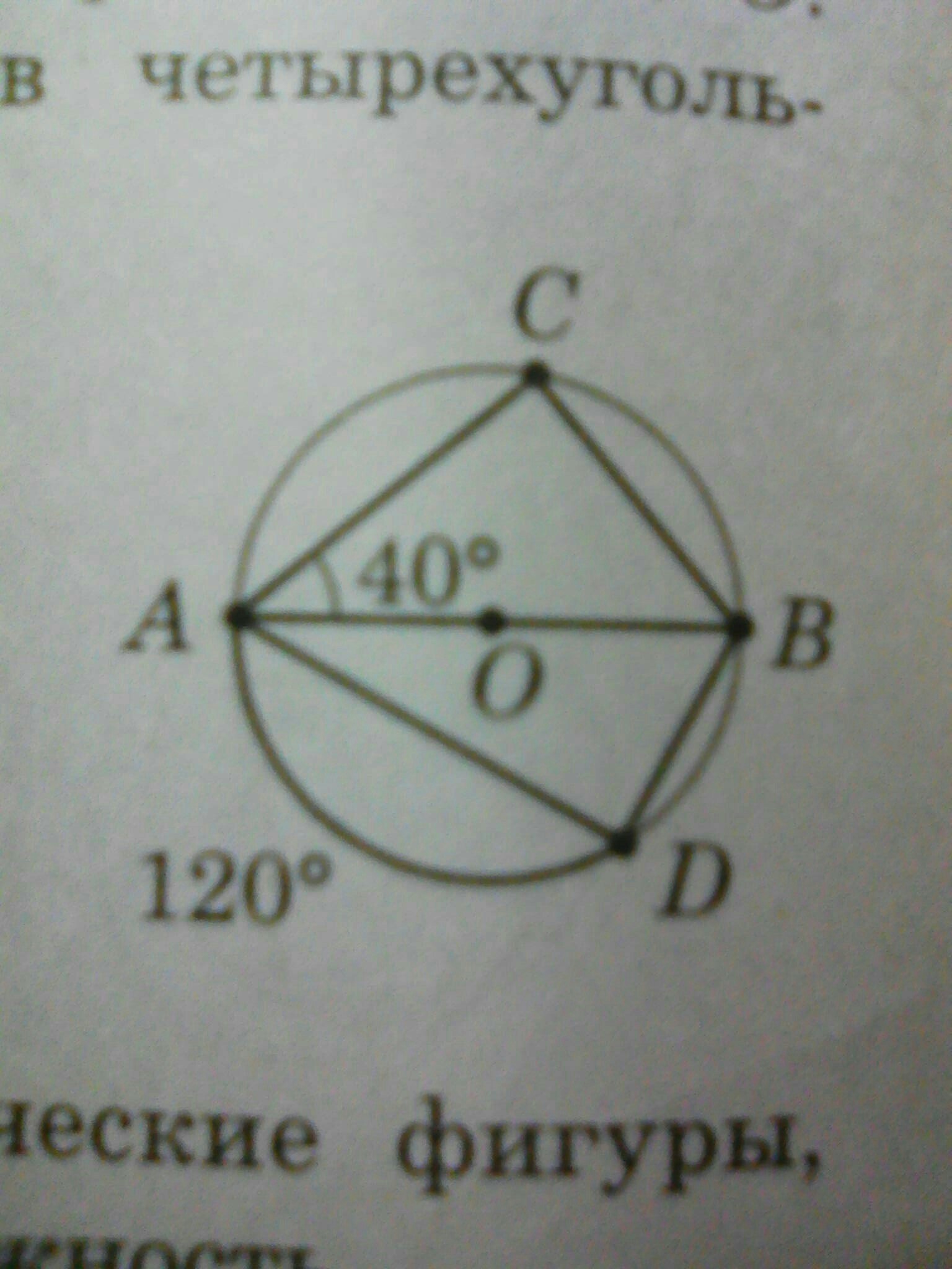 АВ - диаметр окружности с центром в точке О. Найдите градусные меры углов четырёхугольника АСВD
