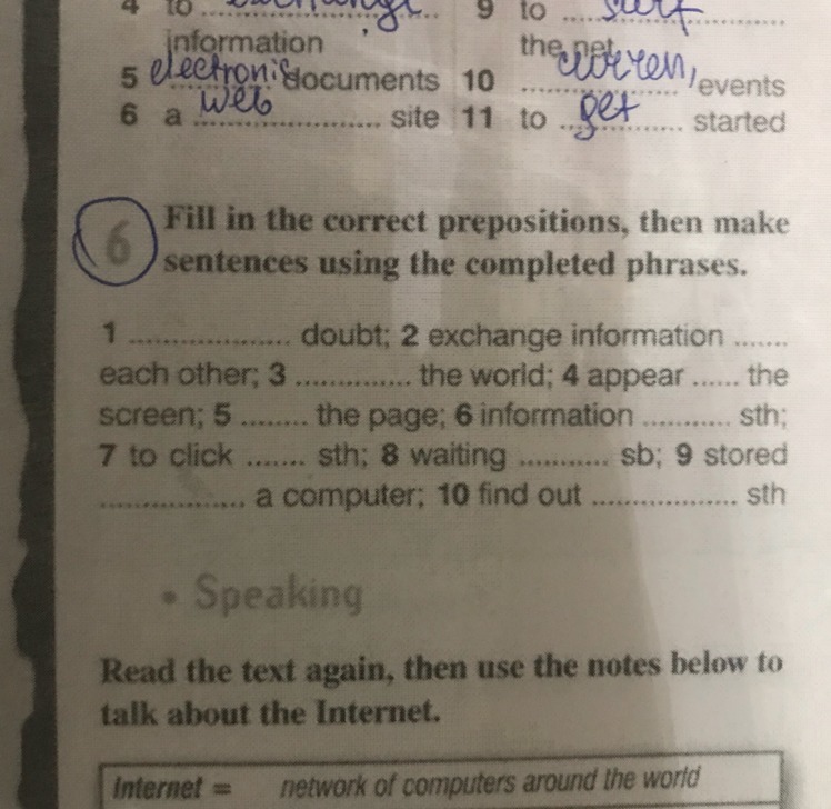 2exchange information with each other (All the computers on the net can exchange information with each other.)