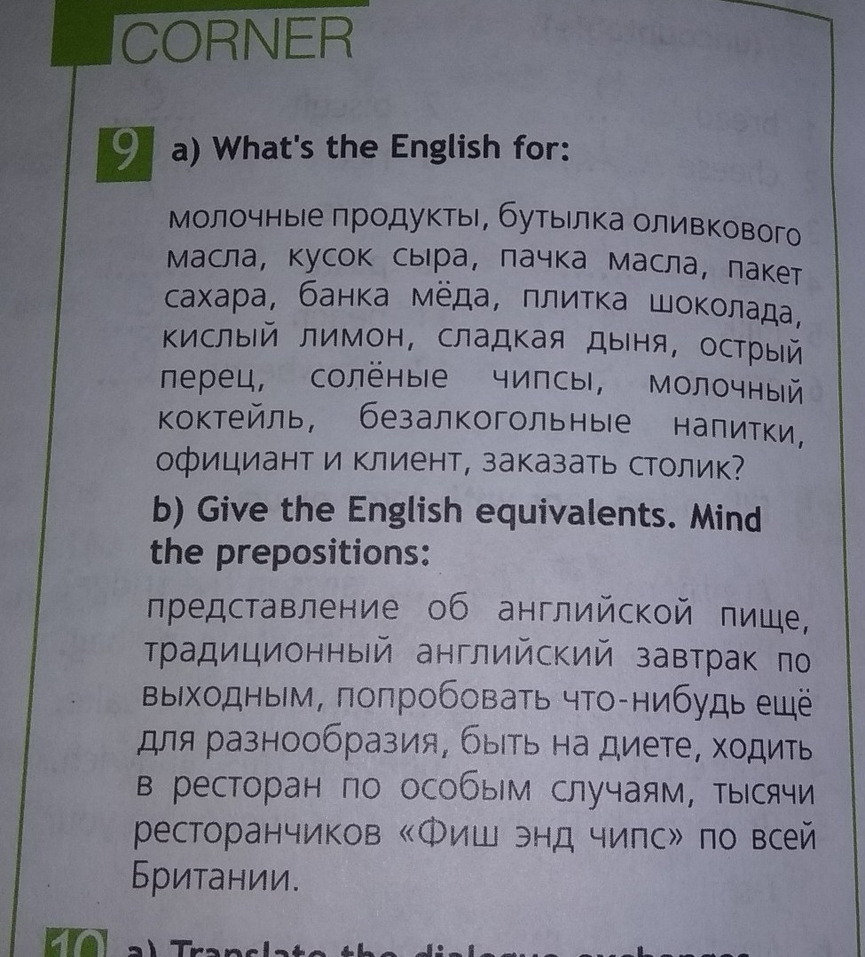 a) dairy products, a bottle of olive oil, a piece of cheese, a packet of butter, a bag of sugar, a honey can, chocolate bar, sour lemon, sweet melon, hot pepper, salted chips, milkshake, soft drinks, waiter and customer, book a table?