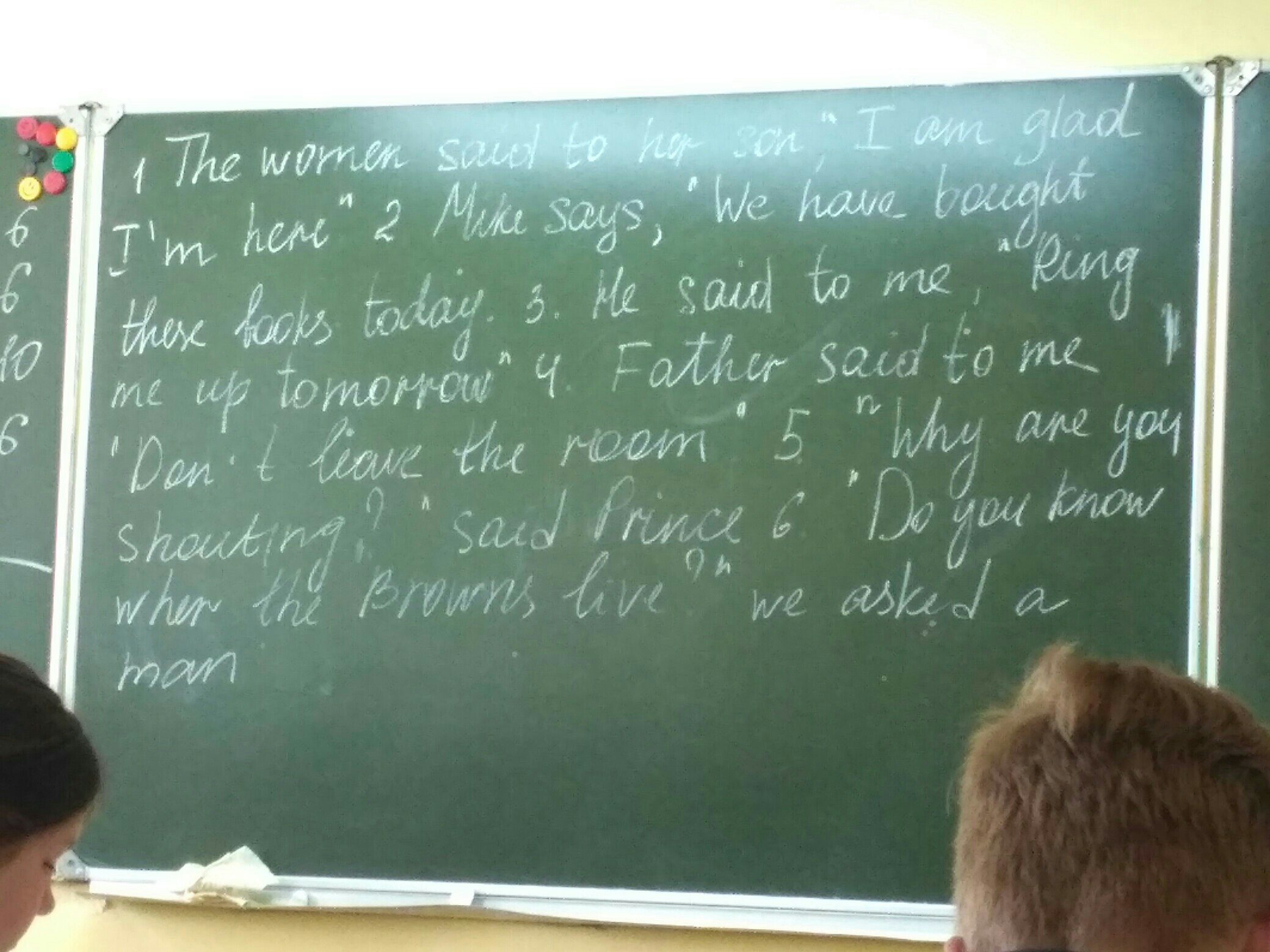 1. The woman said to her son that she she was glad she was here. 2. Mike says that they had bought these books that day. 3. He said to me to ring him up tomorrow. 4. Father said to me not to leave the room. 5.The prince asked why he was screaming. 6. We asked the man whether he knows where the Browns live.