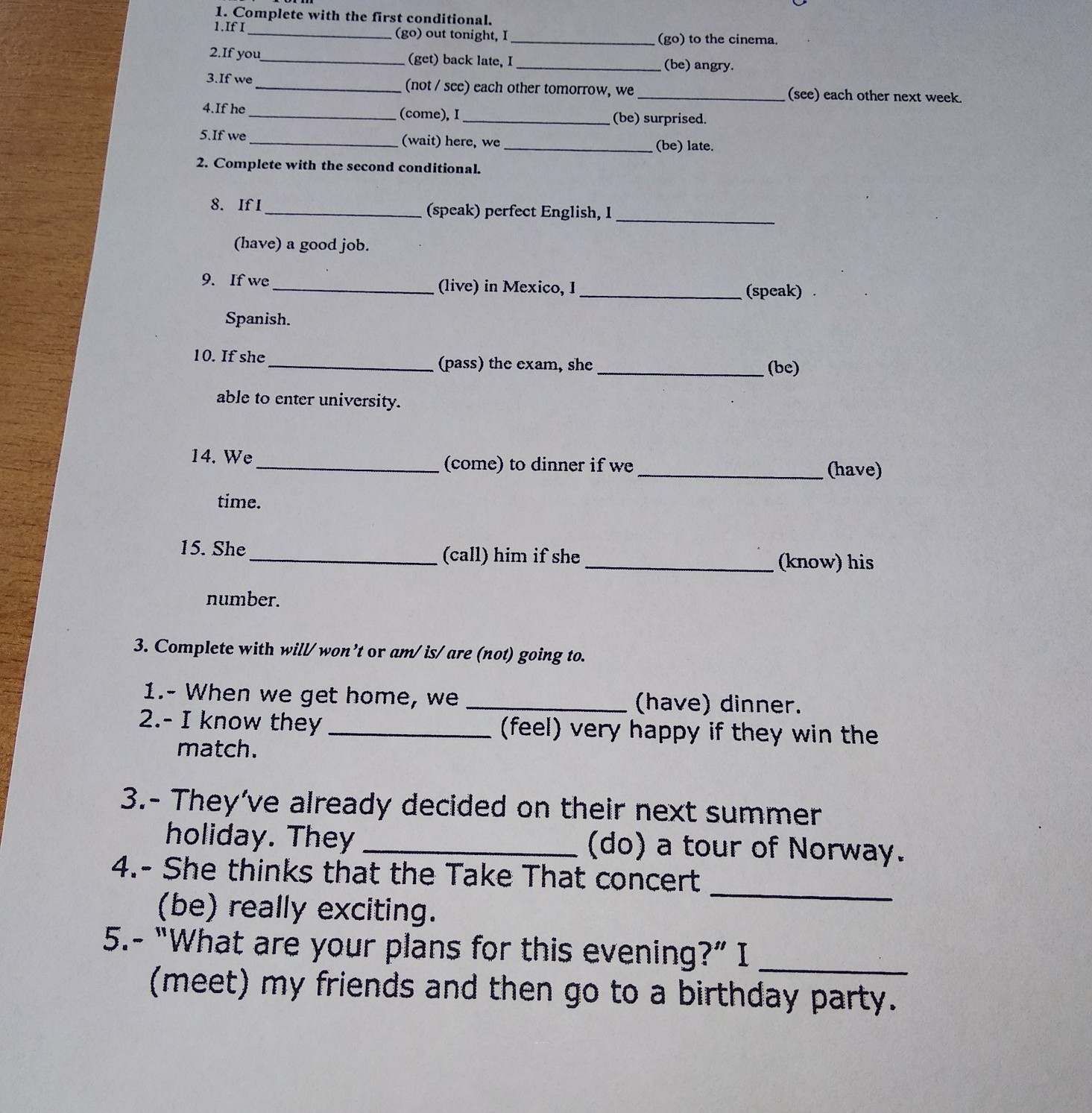 1.1. go will go2. get will be3. don't see will see4. comes will be5. wait will be