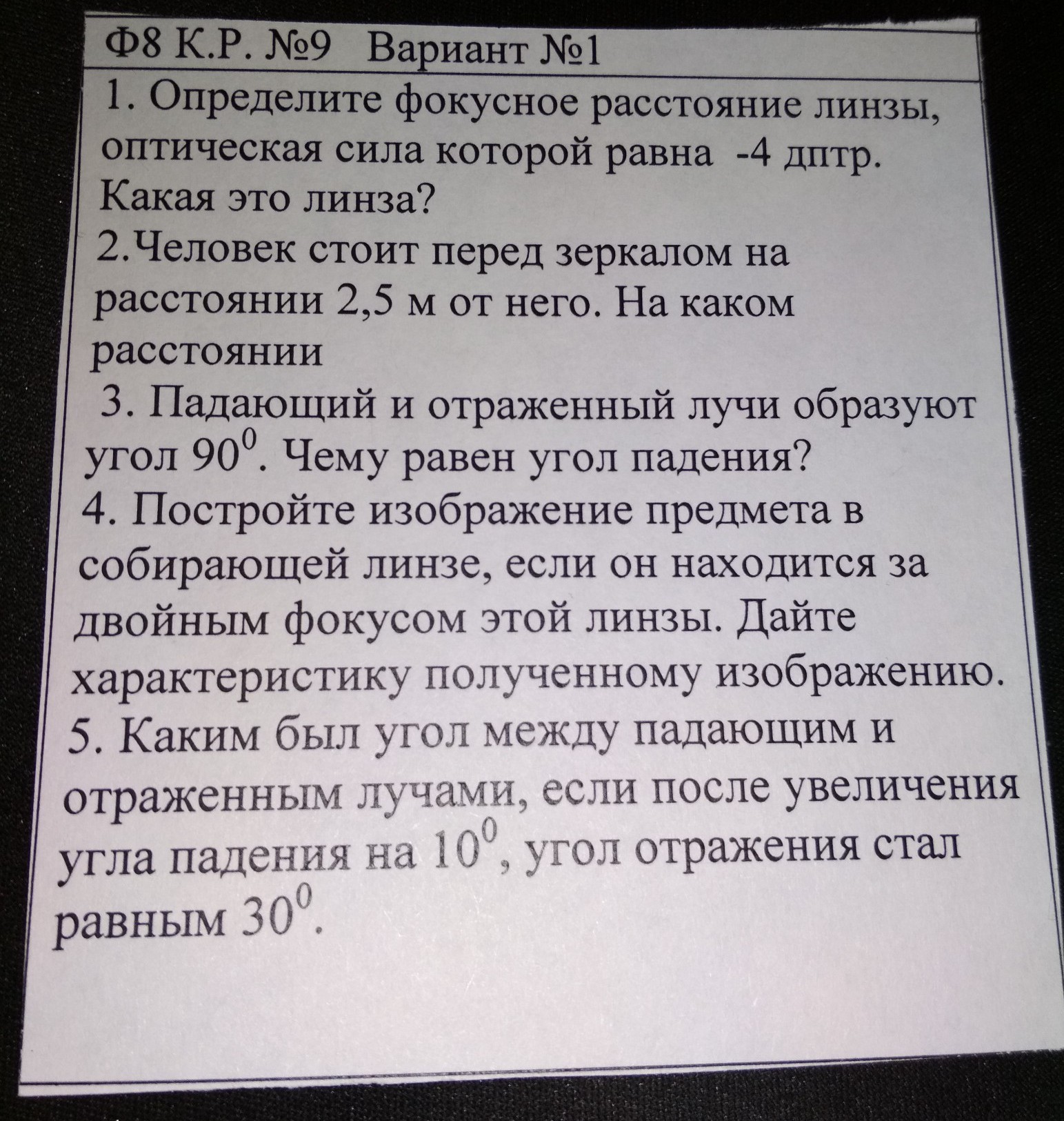 1) т.к. D - отрицательное число, то линза рассеивающая.