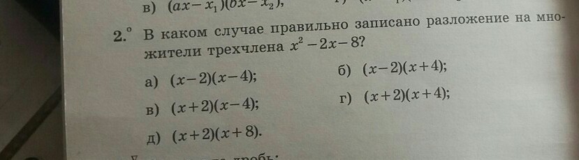 в) (х+2)(х-4) = x^2 - 4x + 2x - 8 = x^2 - 2x - 8