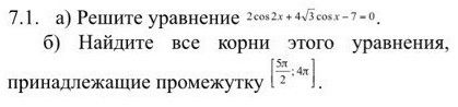 4Cos²x -2 +4√3Cosx - 7 = 0