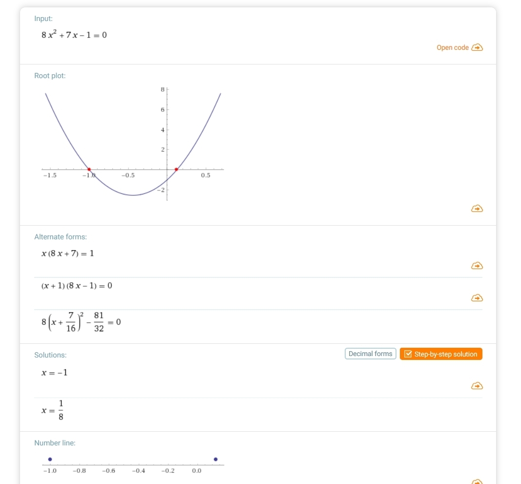 Смотри. Если во второй строчке из левого выражения убрать квадрат, Тогда в квадратном уравнении в третьей строчке снизу вместо двойки будет единица, и ответ будет таким: –1 и 1/8. Я прикрепил к ответу вычисление на компьютере. Возможно, ты (или учитель) ошибся именно здесь.