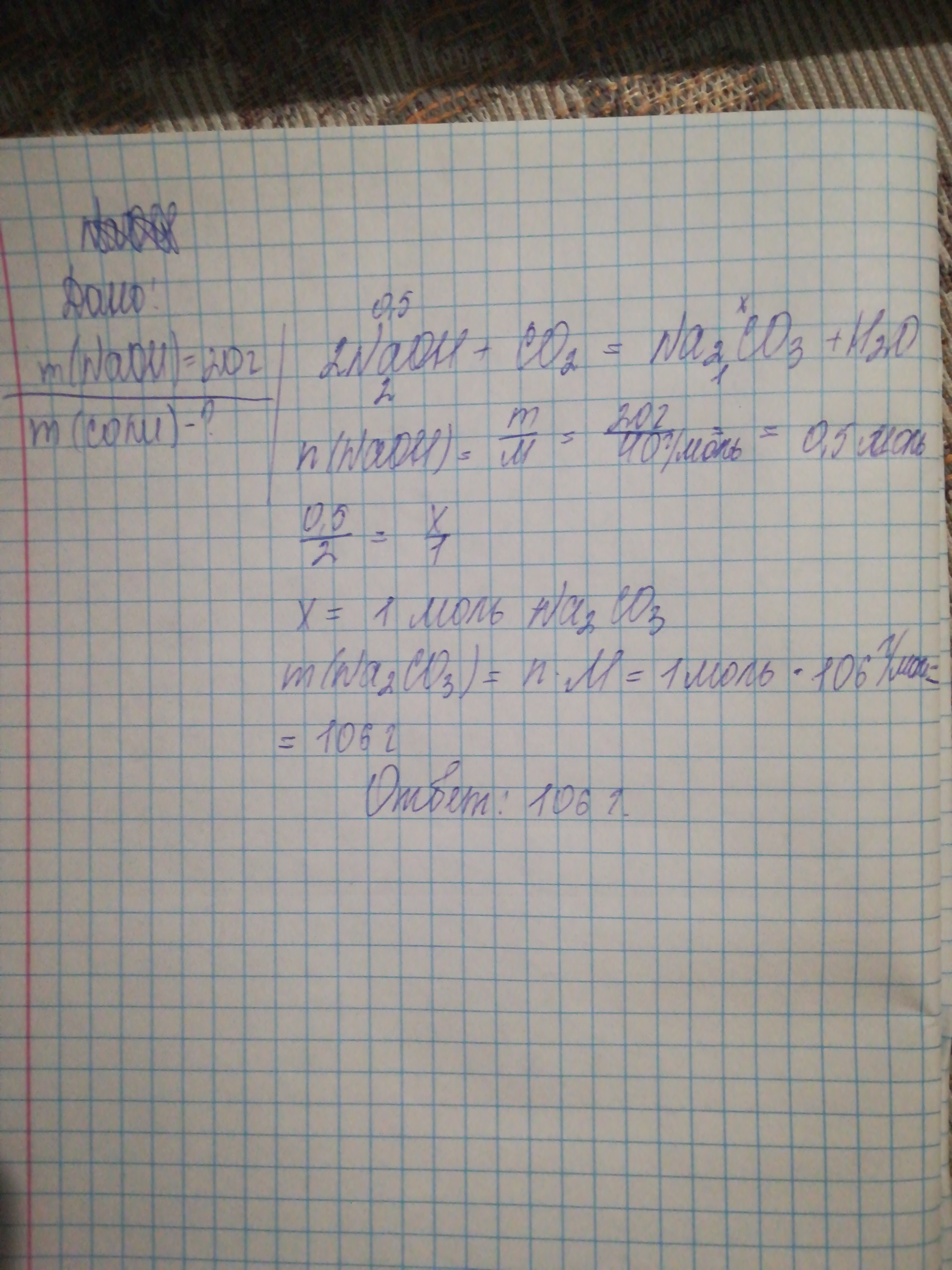 При взаимодействии 20 г гидроксида натрия с углекислым газом образуется соль. Рассчитайте массу полученной соли.