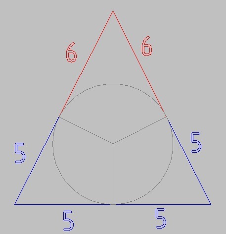 кола поділяє бічну сторону цього трикутника на відрізки 5 см і 6 см, рахуючи від основи. Знайти периметр цього трикутника.