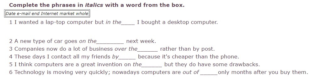 6 Technology is moving very quickly; nowadays computers are out of _____only months after you buy them.