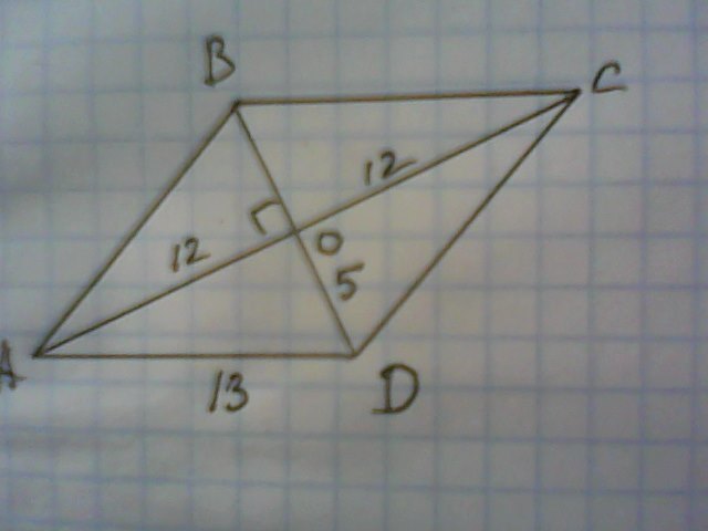 ΔАОD. ОА²=АD²-ОD²=13²-5²=169-25=144,