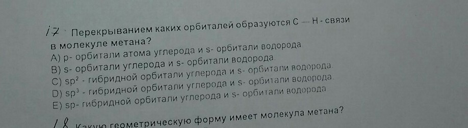 ответ - D (sp 3 - гибридизация)